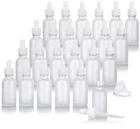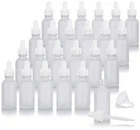 1 oz Frosted Clear Glass Boston Round Bottle with White Dropper (24 pack) + F...