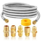 350Psi High Pressure Propane Hose Extension: Both ends of the hose are brass 3/8 inch female flare swivel Nut fittings, Conversion connection of an outdoor appliance to your natural or LP gas line for extending, giving more flexibility moving grill .fire pit. gas heater Brass Conversion Coupling : come powerful 5 different brass adapter couplings fitting; 3/8" NPT Male to 3/8" NPT Male,3/8" NPT Male to 3/8" Flare Male, 3/8" Flare Male to 3/8" Flare Male,1/2" Female NPT to 3/8" Flare Male, 1/4" NPT Male to 3/8" Flare Male; 100% brass union connector gas adapter for corrosion resistance, ductility at high temperatures, and low magnetic permeability Compatible & Wide Application: this 3/8" braided propane hose adapter kit hose has female 3/8" ends on both sides, connect an appliance equipped with a 3/8" male flare fitting; suitable for use extending the propane tank line on your fire pits, gas grills, propane heaters, stoves, propane smokers, portable generators, burners,propane generators High Quality: 10 feet stainless steel braided high pressure propane hose extension assembly passed quality and safety certification, Compared with an ordinary high-pressure rubber pipe, its outer layer is protected by stainless steel braiding, Had Durability, extends the longer service life Standard Propane Hose Connector: 3/8” Female flare propane hose with 5 different types of brass adapter fittings; Great conversion assistance, easy installation, convenient storage, and carrying, flexible use of space, relieve all your worries; Perfect for use can be used for travel trailers or RVs. LP propane stoves. heaters.firepit .fireplace