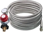 Measure Your Pressure : Use the pressure gauge to determine and regulate your propane PSI. Measuring from 0-60 psi (as well as 1-4 100xKPA), the Pressure Gauge lets users control their heat with a precise level of accuracy End Fitting to Appliance : 3/8” female flare fitting,fit for gas grills, gas stoves, turkey fryers, burners, smokers, cooker, fire pit and heater, hot water heater, as long as your appliance connection is 3/8’’ male flare connector Durable Material Design: The propane hose body is made of stainless steel it will long lasting for your appliance, provides secure, airtight connection between grill and turkey fryer or burner and tank Hose Connector to Propane Tank: Black part fitting is POL connector, you can directly connect your 40 Pound propane tank to 100 Pound, Don't need to move your atmospheric bottle Propane regulator and hose has excess flow protection and will automatically shut off, easy to install your propane bottle and propane appliance 0-30 PSI High Pressure Adjustable Propane Regulator with Gauge is your best choice. The propane has a Gauge that will tell youhow much pressure you are turning the knot to release gas,Let you adjust yourfire better,make your stove/Grill/Buner/Smoker/turkey fryerslike new. If the stove/Grill/Buner/Smoker and moreactually needs more or less pressure, you can adjust it with this instead ofjust being screwed by having the default regulator pressure. The propane hose body is made of stainlesssteel it will long lasting for your appliance, Prevent being bitten by smallanimals This propane hose with regulator has excessflow protection and will automatically shut off. Protect you from danger.