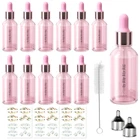 12 Pack (30 ml) 1 oz Pink Glass Boston Bottles with Glass Scale Eye Droppers,...