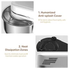 1 Intelligent Control Panel: The food mixer with touchscreen OLED control panel has tough kneading, mixing, whisking , along with speed and time displays. it includes three touch keys: a function selection menu key, a start, pause, power key, and a speed and time setting key. you can adjust and observe the status of your food at any time while you are cooking it Variable Speed Control: This kitchen food mixer has 11 speed settings that you can choose to go from slow to fast when blending your food. the different speed settings adjust to your food blending needs and help you to cook delicious and flavorful food quickly Powerful Motor: The stand mixer 1200w dc quiet powerful electric motor lets you tackle tough jobs with confidence.more powerful motor but lower operation noise maximum ≤60 dB Tilt Head Design: The tilt head design electric mixer allows access to install or uninstall bowl and accessories easily. anti slip silicone suction cups on the bottom keep the mixer in place Large Capacity: Our kitchen mixer is equipped with a 5.2QT stainless steel bowl, extra large capacity for you and your family to use together and meet your kitchen needs.stand mixer is easy to use for making cakes, breads, pizza, pasta, cookies