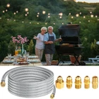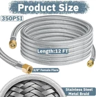 【Premium Material】12 Feet Stainless steel braided propane regulator hose are made of High-strength stainless steel braided. 3/8" female flare fittings on both ends are made of 100% Solid Brass.Durable solid brass provide secured connections between appliance and tank. This Propane Hose with CSA Certification, ensures air tightness and stability. 【Multipurpose Assembly Kit】12FT stainless steel braided propane hose with 5 x Different Conversion Adapter Fittings(3/8" NPT Male x 3/8" NPT Male, 3/8" Flare Male x 3/8" Flare Male, 3/8" NPT Male x 3/8" Flare Male, 1/2" Female NPT x 3/8" Flare Male, 1/4" NPT Male x 3/8" Flare Male). 【Easy to Use】12FT braided propane extension hose can meet your needs and can be used flexibly between propane tank and gas appliance. It can also be used to extend the propane storage tank pipeline on low-pressure equipment. 3/8 "propane hose adapter kit +Buckle Velcro makes the product easier to carry, store and use safely, saving your cost. 【Wide Application】12FT stainless steel braided propane hose has 3/8" internal thread ends on both sides, and is connected with equipment equipped with 3/8" external thread flaring fittings to help you realize multi-equipment connection. It can be used in gas grills, propane burners, fire pits, frying pans, stoves, propane generators, propane smokers, portable generators, etc. 【Quality Assurance】The package includes 1* 12FT 350 PSI High Pressure Propane extension Hose + 5* Brass Adapters + 1* Buckle Velcro + 1* Wrench + 1* Roll Sealing Tape .If you have any questions about this product, please feel free to contact us. 12FT stainless steel hose Length: 12 Feet,durable stainless steel braided propane hose for extending the propane tank line on your LP appliance.Use it to keep your gas tank farther away from grills no effort Hose is with both 3/8" female flare fitting on both sides, connect an appliance equipped with 3/8" male flare fitting. Works for RV, gas grill, propane heater, fire pit table, stove, propane smoker, turkey cooker and more. It's always used to connect an auxiliary tank to the travel trailer or a motor home. Solid brass to provide secure and sealed connection between applications and tank.