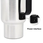 Features: *1. 450ml heating kettle which is very suitable for heating water and coffee and keeping them warm when traveling with family. Electric kettle powered by DC 12V cigarette lighter plug, suitable for 12V vehicles. can drink hot water coffee milk tea on the road. *2. High-quality 304 stainless steel construction and food-grade PP cover, which is safe to drink boiling water. The lid of the sealed kettle is made of high-quality silicone, which is safe and non-toxic. The good sealing performance keeps the water warm and ensures that the beverage will not leak. *3. Both the inside and outside of the travel cup adopt vacuum insulation technology, and the double-layer vacuum insulation can keep hot drinks to the maximum, with good insulation effect and prevent scalding. The car coffee cup heater is suitable for most car cup holders and is very suitable for travel. *4. The coffee cup has an indicator light designed to understand the working status of the electric kettle. Easy to use, just pour the water into the cup and power it on. *5. The travel heating cup can be plugged into any standard 12V cigarette lighter socket. The length of the power cord is about 128cm/50.39inch. Work on most cars, caravans, trailers, RVs and motorhomes. Description: *1. Material: stainless steel *2. Voltage: DC 12V (car cigarette lighter) *3. Heating Temperature: about 65°C, 15 minutes *4. Kettle Capacity: about 450ml *5. Weight: about 300g *6. Size: about 13*17*9.3cm/5.12*6.69*3.66inch (including packaging) *7. Kettle Height: about 16cm/6.30inch *8. Kettle Diameter: about 8.7cm/3.43inch *9. Inner Diameter: about 7.8cm/3.07inch *10. Bottom Diameter: about 6.7cm/2.64inch Package Includes: 1 x Car Electric Kettle