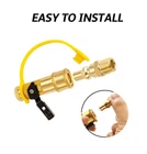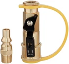 Easy to install, solid brass construction with handle Shutoff Valve: 1/4" Female NPT x Female Quick Connect Full Flow Plug: 1/4" Male NPT x Male Quick Connect Durable and lasting, Used for low-pressure propane systems Add a convenient connect / disconnect method, Comes with dust cap