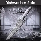 About this item 【Premium knife sets for kitchen with block】 Ultra sharp, full tang, rust resistant technology, German 1.4116 stainless steel. Outstanding craftsmanship, cutting edge technology, stunning design, and superior materials. This is not only the best choice for professional kitchen or home use, but also the highest grade for gifts. Tip: The pattern on the blade is not a damascus pattern, it is a laser pattern. 【Dishwasher Safe】 Each knife is dishwasher tested 999 times. Exclusive patented anti-rust technology ensures that they remain in the best condition after intense rinsing in the dishwasher.Enjoy the pleasure of cooking and then easily restore your kitchen to a tidy state. 【All in One Value Knife Set】 15 pieces Damascus knife set includes: 8" Chef knife, 8" Slicing knife, 7" Santoku knife, 8" Serrated bread knife, 5" Utility knife, 3.5" Paring knife, 6 Pcs 4.5" serrated steak knife, 1 Pc kitchen shear, and Premium Acacia Wood Knife Block with built-in Knife Sharpener. 【Comfortable and safe handle】 Ergonomic knife handle that perfectly fits any hand shape, designed by the most professional designers. Whether you use it left-handed or right-handed, whether your hand is big or small, holding this knife, you can feel the smoothness and comfort that you have never felt before! Show off your cutting skills, it will be your best partner! 【100% Lifetime Warranty】 Risk free trial. astercook trust. Professional 24*7 customer service. Please don't hesitate. astercook will give you the best shopping experience.