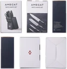 Knife Set, 15-Piece Kitchen Knife Set with Block Wooden German Stainless Steel... Item Description: 15 Pieces Knife Set Includes: 8" chef knife, 8" bread knife, 8" carving knife, 7'' santoku knife, 7" carving fork, 5" kitchen shears, 5" utility knife, 3.5" paring knife, 6pcs 4.5" serrated steak knife and a hardwood knife block. Professional Kitchen Knives: Premium materials, cutting-edge technology, superior craftsmanship, and practical design. Providing outstanding rust resistance as well as long-lasting sharpness, edge retention, and top durability. Built-In Knife Sharpener: No need to worry about the knife becoming not sharp enough, high quality built-in Knife sharpener to keep the knife in the best condition all the time. No more sharpeners, steels or stones. Comfortable Knife Handle: Full tang design, hardwood material, triple rivets reinforcement, and ergonomic shape provide a comfortable grip and agile control, the gravity is balanced, and the operation is more labor-saving.