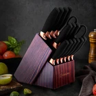 Knife Set, 15-Piece Kitchen Knife Set with Block Wooden German Stainless Steel.... Item Description: Versatile Usage: Our knife set is perfect for home kitchens, professional restaurants, and outdoor cooking settings. Its compact design saves space, making it suitable for kitchens of all sizes and providing a convenient knife storage solution. Additionally, its elegant design and premium packaging make it an ideal gift for housewarmings, weddings, and other special occasions. It's not only a kitchen block set, but also a kitchen decorator. High-Quality Knife Set:Crafted from premium materials, these knives are durable and wear-resistant, ideal for long-term use. Each knife is sharp and precise, perfect for cutting a variety of ingredients. The ergonomically designed PE handles provide a comfortable grip and won't slip even when wet, ensuring a safe and accurate cutting experience. Meets Every Kitchen Need:This 15-piece knife set includes a chef's knife, slicing knife, Santoku knife, bread knife, utility knife, boning knife, fruit knife, 6 steak knives, scissors, and a knife block with a built-in sharpener. With a variety of knives to choose from, it meets all your cooking needs, from chopping vegetables and meat to slicing bread and fruits, making it a versatile kitchen assistant. Stylish & Convenient:The knife holder is made of natural wood, classic wood grain, painted red, built-in sharpener, non-slip bottom for safe storage. The well-designed knife partitions keep all the knives neatly organized, maintaining a tidy and space-saving countertop. Note: after wash you should dry your knives.