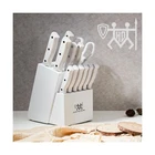 Knife Set, HUNTER.DUAL 15 Piece Kitchen Knife Set with Block and Built-in sharpener, Dishwasher Safe, Anti-slip Handle, White Product Details Color: White Brand: HUNTER.DUAL MPN: FJ-15-QW UPC: 763055833640 EAN: 0763055833640 Color: White Brand: HUNTER.DUAL Blade Material: Stainless Steel Blade Edge: Plain, Serrated Style: MODERN Color: White Brand: HUNTER.DUAL Blade Material: Stainless Steel Blade Edge: Plain, Serrated Style: MODERN Item Weight: 6.8 Pounds Is Dishwasher Safe: Yes Handle Material: Stainless Steel, Plastic UPC: 763055833640 Manufacturer: HUNTER.DUAL Included Components: 1 PC Knife Block, 1 PC Self Sharpener, 1 PC Kitchen Scissors, 12 PC Kitchen Knives Item Length: 8 Inches Item Weight: 6.8 pounds Item model number: FJ-15-QW Date First Available: October 13, 2024 HIGH QUALITY KNIFE SET - German stainless steel Knife Sets for Kitchen with Block is durable and rust-resistant for longer and more frequent use ALL-IN-ONE KITCHEN KNIFE SET - 15-piece chef knife set includes. 8" chef's knife, 8" slicing knife, 7" Santoku knife, 8" serrated bread knife, 5" utility knife, 3.5" paring knife, 6 4.5" serrated steak knives, 1 kitchen shear, knife block with built-in knife sharpener DISHWASHER SAFE - The knife block set can be washed in the dishwasher, easy and quick to operate, and dry the knife set after cleaning for easy storage ERGONOMIC FULL TANG HANDLE - Carefully crafted, ergonomic stainless steel rivets secure the knife to the handle, so you'll feel comfortable and secure when using it without worrying about breaking A MUST HAVE GIFT - This knife set with block is perfect for amateur chefs. Perfect for weddings, birthdays, housewarmings, Thanksgiving, Halloween, Christmas, and more