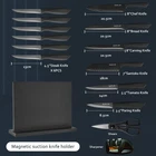 Product Description Kitchen knife set with Magnetic knife holder, 15 pieces high carbon stainless steel sharp kitchen knife set including chef's knife, bread knife, serrated steak knife set, knife sharpener 15 Piece Knife Set - Made of high carbon stainless steel 3CR14, super sharp, well balanced, non-stick, rust proof with long lasting quality. Includes: Magnetic knife holder, 8'' chef knife, 8'' bread knife, 8'' carving knife, 7'' santoku knife, 6 steak knives, 5'' utility knife, 3.5'' fruit knife, shears, knife sharpener. Quality Raw Material AND Sharp Blades - Made from High Carbon Stainless Steel 3CR14 is forged from one solid piece of steel,Processes the steel in a specific way to make sure it has a high hardness of 52°Rockwell. It makes each knife has extremely sharpness, rust-resistance, long-lasting edge, and excellent toughness. The edges of knives are carefully hand sharpened, maintaining the well-balance between achieving ultra thin slices and maximum resilience which is assist chop food. The Magnetic Knife Holder is a versatile holder that provides a safe, convenient and stylish way to store knives. It is double sided strong magnetic suction, no need to worry about falling off, stronger adsorption force allow largest knives to hang safely and securely, ultra sturdy and easy to clean up, providing an easy and effective way to store knives, while freeing up valuable countertop space, and it’s easy for you to see and reach all your different knives when you cook. Kitchen knives set has a unique outlook compared with the other ordinary knives set. Two styles to choose from, one is pure black exquisite and understated, the other one is plating gorgeous and cool, it looks more sophisticated and stylish. Ergonomically designed stainless steel handle provides comfort, don't have to worry about handles falling off. It also prevents blunt and rust effectively. It provides a strong grip to perform delicate work and helps reduce hand fatigue. Beautiful Packaging AND GREAT Service - Each knife is backed by superior quality assurance and can be purchased with confidence. The knife set comes with a beautifully packaged, and it can be a gift for parents, wives, husbands, friends and family. It can be a gift for wedding, birthday, housewarming, thanksgiving, Halloween. Please inform us if you have any questions about our products, which is convenient to us providing better services for you. About Us We are a reputable seller with many years of experience selling on eBay. Our goal is to provide high-quality products and excellent customer service. Shipping Items will be shipped within 1-3 business days when we received payment. (Orders are not processed on weekends & holidays) Tracking information will be sent once item is shipped. Delivery time depends on destination and other factors Item is shipped to ebay address. Leaving correct address can minimize delay. For international shipping and shipping to Guam, Hawaii and Alaska, Please contact us before placing the order. International buyers please note: Import duties, taxes and charges are not included in the item price or shipping charges. These charges are buyer’s responsibility. We will try our best to reduce the risk of the custom duties. Local pick-up is unavailable at the moment. Contact Us We reply any email messages within 1 business / working days(off-duty at weekend). If you do not get a response from us, then please check your junk or spam mailbox. Our Business hours: Mon-Fri 9:00-18:00, UTC/GMT +8 hours. Please contact us either by clicking "contact seller" in the "purchase history" section or simply click "ask a question" at the bottom of this page. If you are unsatisfied with our item or service, please contact us before leaving any feedback. We are committed to resolve all issues in a friendly and satisfactory manner.