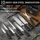 Ultimate Kitchen Knife Set Investment: Engineered for superior edge retention and durability, block knife sets maintain razor-sharp precision with minimal maintenance, ensuring professional-level performance that stands the test of time. Lifetime Service and Assurance: knives offer superior hardness and edge retention, staying sharp and corrosion-resistant for a lifetime of reliable use. We're confident in the quality of our knife set with block. That's why we offer a 100-day hassle-free return policy and lifetime assurance, presenting not just a knife set, but a lifelong culinary partnership. Confidence in Every Cut: has developed an innovative steel with optimized structural composition and carbon content. Each blade features an incredibly sharp 10° cutting edge, ensuring every slice is smooth, swift, and precise. Forged to Last: Advanced cryogenic tempering and precision heat treatment ensure superior hardness, flexibility, and corrosion resistance. Full-tang construction guarantees durability without breakage. Everyday Dish and Elaborate Meal: Comes with 8" chef knife, 8" bread knife, 6" boning knife, 7" santoku knife, 5" utility knife, 3.5" paring knife, 6pcs 4.5" steak knife set, a multi-purpose shear, a sharpening steel all housed in a solid wood block with non-slip bottom. Hand-wash recommended for premium-quality knives. A Precious Emotional Exchange: knife set represents a tribute to culinary skills and a love of food. Ideal gift for housewarmings, weddings, birthdays, Thanksgiving, and Christmas, it's a testament to your discerning taste and thoughtfulness for your beloved ones. Dancers at Your Fingertips: Ergonomically designed handles and a non-slip bolster provide exceptional comfort and control, assisting you in fully unleashing your culinary mastery.