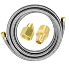 This Extension Hose with Stainless steel braided more durable and flexible for any RV grill, fire pit, heaters, torch extension using Specifications: 16Feet Long, Extension Stainless Steel Propane Hose 350PSI Rated More Durable with Coating Stainless Steel. Fittings: Both Ends with 3/8" Female Flare Connector (Thread standard is 5/8"-18UNF Female Swivel Fittings) Easy to Used for BBQ Grill, Fireplaces & Other Gas Appliance Extension Using and Propane Torch and Other High Pressure Gas Application. Not Suitable for Water. Kits Include: 1 of 16 FT Hose, 1 of 1/2" Npt Male to 3/8" Male Flare Fitting Adapter, 1x of Npt Female to 3/8" Male Flare Fitting Adapter, Burst Pressure of Hose: 37Mpa. And Leaking Test Passed.