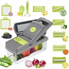 The 16-In-1 Vegetable Fruit Chopper Cutter is a versatile kitchen tool set that includes a variety of items such as a cleaning brush, slicer, vegetable peeler, salad cutter, and more. Made of stainless steel and plastic, this fruit cutter is designed to be multi-functional, manual, and easy to clean. It offers adjustable thickness options for slicing vegetables and fruits with ease. This set is ideal for cutting and preparing a variety of vegetables and fruits for cooking or snacking purposes. Perfect for any kitchen, this chopper cutter offers efficiency and convenience for food preparation tasks.