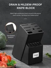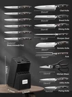 Product Description Knife Set with Block, 16 Pcs Stainless Steel Kitchen Knife Set with Sharpener & Wooden Block, Knife Block Set with Wood Handle, Chef, Santoku, Bread, Utility, Paring & Carving Fork Knife, Black 【Professional 16 Pcs Chef Knife Set】The 16 Pcs knife set include 8" chef knife, 8" slicing knife, 8" serrated bread knife, 7" santoku knife, 7" carving fork, 5" utility knife, 3.5" paring knife, 6pcs 4.5" serrated steak knife, 1 pair kitchen shears, knife sharpener, and acacia wood knife block, meeting all your needs at once. 【Ultra Sharp & Durable Blade】Forged from X50Cr15 superior high-carbon German stainless steel with a 55±2 on the Rockwell Hardness Scale. Exclusive taper grind edge technology provides optimum sharpness for precise cutting, with each knife edge hand-polished to 14-16 degree edge per side. Upgraded heat treatment ensures these knives have exceptional edge retention. 【Full Tang & triple-riveted Handle Design】Luxury wooden handle that is triple-riveted for sure grip and absolute stability that ensures comfort and maneuverability. Laminated and polished for a sanitary build, perfect for busy kitchens. 【Acacia Wood Knife Block】 All knives are well organized into 1 wood block made of durable natural Acacia Wood, it helps to keep a keen edge on your blades and makes a handsome addition to a countertop. Not only does it have an elegant appearance, but compared to other woods, acacia wood is more sturdy and durable. It is better to keep knives for a long time. 【Perfect Gift Set】 16 PCS kitchen knife set comes with an elegant block, containing all the essential knives that a family will need. Essential knife block set for both professional and amateur cooks. Perfect gift for weddings, birthdays, Housewarming, Thanksgiving, and Halloween. About Us We are a reputable seller with many years of experience selling on eBay. Our goal is to provide high-quality products and excellent customer service. Shipping Items will be shipped within 1-3 business days when we received payment. (Orders are not processed on weekends & holidays) Tracking information will be sent once item is shipped. Delivery time depends on destination and other factors Item is shipped to ebay address. Leaving correct address can minimize delay. For international shipping and shipping to Guam, Hawaii and Alaska, Please contact us before placing the order. International buyers please note: Import duties, taxes and charges are not included in the item price or shipping charges. These charges are buyer’s responsibility. We will try our best to reduce the risk of the custom duties. Local pick-up is unavailable at the moment. Contact Us We reply any email messages within 1 business / working days(off-duty at weekend). If you do not get a response from us, then please check your junk or spam mailbox. Our Business hours: Mon-Fri 9:00-18:00, UTC/GMT +8 hours. Please contact us either by clicking "contact seller" in the "purchase history" section or simply click "ask a question" at the bottom of this page. If you are unsatisfied with our item or service, please contact us before leaving any feedback. We are committed to resolve all issues in a friendly and satisfactory manner.