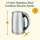 Cuisinart 1.7-Liter Stainless Steel Cordless Electric Kettle with 6 Preset Temperatures Brand Cuisinart Color Stainless Steel Special Feature 6 Preset Temperatures; One-touch Controls with Blue LED Indicators; 30-Minute Keep Warm Option; Blue Backlit Water Window, 360° Swivel Cordless Connector; Stay-cool Nonslip Handle; Auto Shutoff and Boil Dry Protection6 Preset Temperatures; One-touch Controls with Blue LED Indicators; 30-Minute Keep Warm Option; Blue Backlit Water Window, 360° Swivel Cordless Connector; Stay-cool Nonslip… See more Package Information Kettle Finish Type Brushed Capacity 1.7 Liters Material Stainless Steel Voltage 110 Wattage 1500 watts About this item 1500 watts for fast heat-up and 1.7-liter capacity 6 preset heat settings (160°F for delicate teas, 175°F for green tea, 185°F for white tea, 190°F for oolong tea, 200°F for French press coffee, and Boil for black tea or instant foods) One-touch controls with blue LED indicators, 30-minute Keep Warm option, and 2-minute memory feature 360° swivel power base for cordless convenience, concealed heating element, and boil-dry protection with auto shutoff . We offer FREE shipping on all orders! . We ship within Five business days of payment, usually sooner. . We use a selection of shipping services such as UPS, FedEx, USPS etc. . We only ship to the lower 48 states, no APO/FPO addresses or PO Boxes allowed. . Local pickups and combined shipping options are not provided at this time. . You can return a product for up to 30 days from the date you purchased it. . Any product you return must be in the same condition you received it and in the original packaging. Please keep the receipt. . Your satisfaction is a wonderful reward for our efforts. Please assist us by leaving a positive review if you feel pleased with our service. . In the event that you encounter any difficulties related to your order, please do not hesitate to reach out to us directly through the Messaging system on the Ebay platform. Kindly consider opening a COMPLAINT or a RETURN REQUEST as a last resort, only after all other possible measures have been attempted and we have been unable to provide you with assistance. . We will get in touch with you within 24 hours and make every effort to ensure your satisfaction. . Please rest assured of our service quality.