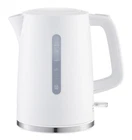 The 1.7L Plastic Kettle features easy one-touch operation. Convenient cordless design lifts off the base for easy serving. A concealed heating element and safety-locking lid provides extra security. This kettle is made of high-temperature resistant plastic in a bright white coloration. The large water viewing window makes it easy to see how when you need to refill the water in the kettle. Orange indicator light Convenient external semi-transparent water gage Automatic shut off and boil dry protection Safety locking lid 360 degree rotation Cordless, detach from base for ease of use Max capacity 1.7 Liter Concealed heating element Color: White Condition: New