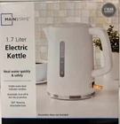 Orange indicator light Color: White Condition: New Safety locking lid 360 degree rotation Max capacity 1.7 Liter Concealed heating element Convenient external semi-transparent water gage Automatic shut off and boil dry protection Cordless, detach from base for ease of use The 1.7L Plastic Kettle features easy one-touch operation. Convenient cordless design lifts off the base for easy serving. A concealed heating element and safety-locking lid provides extra security. This kettle is made of high-temperature resistant plastic in a bright white coloration. The large water viewing window makes it easy to see how when you need to refill the water in the kettle.