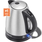 Its sleek finish looks amazing in any kitchen and boils water significantly quicker than stovetop methods. Perfect for heating up water for anything from tea, coffee or hot cocoa to instant soup, oatmeal and more! The kettle easily lifts from its swivel base for easy filling at the sink and graceful serving without the hassle of a power cord; it can also be returned to its power source from any direction, great for right and left-handed users. For safety, the kettle shuts off automatically once the water has reached a boil - no need to worry about it boiling dry! RAPID BOIL: Powerful 1500-Watt kettle boils water faster than microwave or stovetop methods, so you can spend less time waiting for your water to heat up. Use it to quickly bring up to 1.7 liters of water to a boil for making anything from tea, instant coffee, and hot cocoa to oatmeal, instant soup, noodles, and more! CONVENIENT: The stainless steel kettle makes a striking presence on any kitchen counter or buffet. Transparent water level window makes for accurate measurements; cord wraps under base to help keep your kitchen nice and tidy. 360° ROTATING BASE: The kettle easily lifts from its 360-swivel base for easy filling at the sink and graceful serving without the hassle of a power cord. It can also be returned to its power source from any direction, making it great for right and left-handed users. SAFETY FEATURES: Advanced safety technology automatically senses when there is no water left and shuts off for safety and long-lasting durability - no need to worry about it boiling dry! This kettle is compatible with 120 volt outlets.