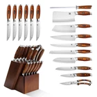 【Razor Sharp Edge】The knife blade is made of premium German stainless steel at 58±2 rockwell hardness with a hand polished edge at 12-16 degrees per side. Expertly crafted with a tapered stainless steel edge that cuts with ease and efficiency. 【Well-Designed Knife Set】Includes: 1*bone chopper, 1*cleaver knife, 1*chef knife, 1*carving knife, 1*bread knife, 1*santoku knife, 1*utility knife, 1*fruit knife, 6*steak knives, 1*kitchen shears, 1*Honing steel, 1*Knife Block. These blades will provide you with the perfect, clean separation you’ve been searching for bone chopping, slicing, precise peeling, filleting, skinning, trimming and butterflying. It is essential for any serious chef. 【Ergonomic Design Handle】Pakkawood handle for a durability yet balanced and comfortable grip. Every curve and angle of the handle is ergonomically designed for a comfortable and ambidextrous hold. The shape of the blade also brings you a minimal slicing resistance. Most importantly, excitement back to cooking. 【Sleek and Simple Look】The blade is hand polished to a satin finish revealing a stunning look. Premium pakkawood handles highlights the harmony appearance to the whole piece. 【's Commitment】Ensuring high-quality products is our top priority. We are dedicated to delivering excellence to our customers. In the rare event that you encounter any quality issues upon opening the package and receiving your knife, we will gladly provide a replacement. Your satisfaction is our utmost concern.