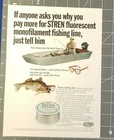 Perfect for framing. 1967 DUPONT STREN FISHING LINE Print Ad. FULL COLOR Collectible Cabin Fishing Art. Original 11"x8". This page is from a Vintage Magazine. The page is in good condition with light age toning. This is an original advertisement and not a reproduction. I carefully removed this from the magazine it was originally in. It will be stored and shipped in a plastic sleeve with a backing board. If you like this please check our other listings as we upload similar items daily.