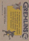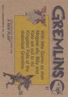 This listing is for your choice of any available 1984 Topps Gremlins card, sticker or wrapper from the drop-down menu above. Photos show front and backside of each card, be sure to scroll sideways to view front and backside photos! Any questions? Please ask before buying. International "USPS First Class Mail" will not include a tracking number for this item, if you would like a tracking number please choose the "eBay International Standard Shipping" option when you check out. As with all of my "pick-a-card" listings, I will be shipping with "eBay Standard Envelope". The rules of this envelope state that it cannot be too thick, so please expect your order to be packaged as follows: 1 to 6 cards will be slid into a single sleeve, the sleeve will then be slid inside of a semi-rigid Card-Saver. 7 to 12 cards will be slid into a double sleeve, 13 to 18 cards into a triple sleeve, 19 to 24 cards into a quadruple sleeve(up to six cards per sleeve). The double, triple and quadruple sleeve shipping will not have the Card-Saver. If you buy more than 1 card and want it packaged with more than 1 Card-Saver(or 1 sleeve per card), I kindly ask that you contact me before purchasing to be sure that this is possible to have it done with the stated shipping charge, or if additional shipping would be required. If you do not contact me, then you can expect to receive your order packaged as I have explained here. Please do not expect rigid top-loaders to be included, I don't normally keep a lot of them in stock, but if you message me prior to ordering I will be able to see if I have any that can be included with your order - additional shipping may be required. In order to get free combined shipping from this and any of my other "pick-a-card" listings, you must add all of your cards to the cart and check out when you are done shopping. If you do not use the cart you will be overpaying on shipping and I cannot refund you on over-payed shipping. So please use the cart and get your FREE COMBINED SHIPPING!