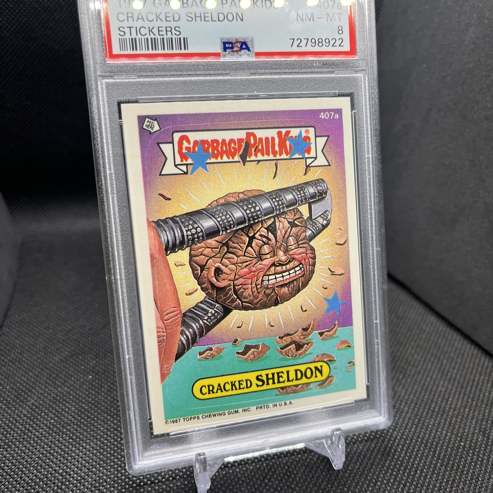 1987 GARBAGE PAIL KIDS STICKERS #407a CRACKED SHELDON PSA 8 - Pop 1, 17 Higher.