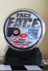2 1997 Stanley Cup Hockey Pucks - Philadelphia Flyers vs. NY Rangers playoff and Flyers vs. Detroit Red Wings FINALS. Includes plastic stands.