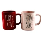 Add a touch of charm to your mornings with this delightful Rae Dunn Artisan Collection mug set by Magenta! Featuring the heartfelt phrases "Puppy Love" on a bold red mug and "Love Bug" on a soft pink mug, these ceramic mugs exude a cozy, handcrafted vibe that Rae Dunn fans adore. Both mugs are dishwasher and microwave safe, making them as practical as they are stylish. Perfect for gifting or treating yourself, these mugs bring a warm and inviting aesthetic to any coffee or tea ritual. A must-have for collectors or anyone who loves a whimsical start to the day! 3" wide x 5"high