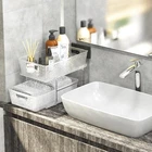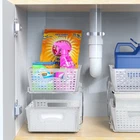 Great Bathroom Organizer Tray, Plastic Perforated Tray in Humid Places Sliding Basket for easy access in limited space ; Weaved Basket Bold Design Two drawers. Great for kitchen, bathroom and storage room organization. Gain more space in the cabinet, pantry room or even open space No drill, no power tools needed. Easy assemble and save more space Outer Dimension: 14.4" L X 8.3" W X 9.8" H