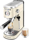 Make Your Favorite Espresso Coffee At Home: The CASABREWS coffee machine with milk frother allows you to prepare all your favorite espresso-based coffees. You can enjoy a barista-brewed latte, cappuccino or macchiato at home. Stainless steel appearance, stylish and durable, ideal for any size kitchen. This compact espresso coffee maker is perfect for home or office use Professional 20 Bar Pressure System: Semi-Automatic 2-in-1 Espresso Maker, with 20 bar professional Italian pump and 1350 W powerful motor. This espresso coffee maker gives you top quality extraction, resulting in a more fragrant and rich aroma. The built-in pressure gauge on this cappuccino machine shows the exact pressure helping you make adjustments according to your personal taste preferences. You can create a cappuccino at your home or office with our coffee maker with milk frother COMPACT, STYLISH & PRACTICAL: The beautiful and compact design makes this small espresso machine suitable for any size kitchen. Make single or double espresso shots with a beautiful layer of crema in minutes! The 34 oz water tank allows you to brew multiple cups, and it is detachable for easy refilling. Included components: Espresso Machine, 34 oz Removable Water Tank, One Cup Brewing Filter, Two Cup Brewing Filter, Portafilter, Tamper With Spoon, Instruction Manual Milk Frothing System: Our espresso machine with milk frother has a powerful steam wand, so you can texture creamy, rich microfoam milk to create amazing milk foam art and enhance the flavor of your brews. Awaken your inner barista and create your own unique milk foam art. Don't pass us by if you are looking for an excellent latte machine Useful Tips: Please kindly note that do not brew coffee immediately after frothing milk. The machine must cool down first otherwise the temperature and the pressure inside the machine will be too high, and the machine will go into over-heating protection mode. The lights for 1 cup or 2 cup will flash repeatedly and please follow the steps of included guide to cool down the machine. You can watch more INSTRUCTIONAL VIDEO by clicking Visit the CASABREWS Store Product Description Note: Please find the user guide and trouble shooting guide on our “Product guides and documents” page that will help you use our espresso machine correctly. Stainless Steel Design The beautiful brushed stainless steel design makes this latte maker suitable for any size kitchen Heated Cup Holder The heated metal plate on top of the machine can preheat two coffee cups at the same time 20-Bar Italian Pump Our espresso machine lets you make full-bodied, creamy espresso with its 20-bar pressure pump system Powerful Steam Wand The powerful steam wand allows you to adjust the milk temperature and texture to suit your tastes 34 oz Water Tank The water tank is removable, it is easy to refill and reattach, and the water level is visible 1 Compact Design 2 Cup Warmer 3 20-Bar Italian Pump 4 Powerful Steam Wand 5 Removable Water Tank Note: Too coarse a grind, too little coffee grounds, or insufficiently tamping the coffee grounds before brewing can all lead to inadequate pressure for a proper brew. The amount of espresso extracted will vary depending on the grind size and amount. Why Choose CASABREWS Espresso Machine CM5418! a.With 20-bar professional Italian pump, it gives you top quality extraction, resulting in a more fragrant and rich aroma. b.With built-in pressure gauge, it shows the exact pressure helping you make adjustments according to your personal taste preferences. c.It has a powerful milk foaming steam wand, so you can texture creamy microfoam milk to create amazing milk foam art and enhance the flavor of your brews. d.It makes a great gift for all of your loved ones. The video showcases the product in use. The video guides you through product setup. The video compares multiple products. The video shows the product being unpacked. How to Cool Down the Machine? Why doesn't machine work, only 1 cup and 2 cup buttons are flashing? If the 1 CUP/2 CUP indicators are flashing simultaneously and rapidly after the 1 CUP/2 CUP button is pressed, and you are unable to brew coffee, it indicates that the over-temperature protection is triggered. PLEASE turn the knob on the side of the machine to the WATER position to let the hot water come out for 20 seconds, and then return the knob to the OFF position. When the boiler is cooled down, you can brew the coffee again. PLEASE do not brew coffee immediately after frothing milk. The video showcases the product in use. The video guides you through product setup. The video compares multiple products. The video shows the product being unpacked. How to Stop Beeping? Why won't machine stop beeping, 1 CUP/2 CUP/STEAM indicators are flashing? When turned it on, the machine won't stop beeping. 1 CUP/2 CUP/STEAM indicators are flashing simultaneously and buttons don't work. It may indicate that the knob on the side of the machine is switched to the STEAM position. PLEASE turn the knob back to the OFF position. Then the machine will stop beeping and work normally. The video showcases the product in use. The video guides you through product setup. The video compares multiple products. The video shows the product being unpacked. How to Pump Water? Why does the machine keep running with no coffee or water coming out? If the espresso machine is running normally, but there is no coffee or water coming out, it means that the pump can not draw any water from the water tank. PLEASE re-install the water tank 2-3 times. Turn on the machine and turn the steam knob to the WATER position to let the hot water come out for 20 seconds. Then return the steam knob to the OFF position. The video showcases the product in use. The video guides you through product setup. The video compares multiple products. The video shows the product being unpacked. How to Set the Volume? You can set the volume of the 1 cup and 2 cup according to your needs. Set the volume of 1/