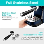 Make Your Favorite Espresso Coffee At Home: The CASABREWS coffee machine with milk frother allows you to prepare all your favorite espresso-based coffees. You can enjoy a barista-brewed latte, cappuccino or macchiato at home. Stainless steel appearance, stylish and durable, ideal for any size kitchen. This compact espresso coffee maker is perfect for home or office use Professional 20 Bar Pressure System: Semi-Automatic 2-in-1 Espresso Maker, with 20 bar professional Italian pump and 1350 W powerful motor. This latte maker gives you top quality extraction, resulting in a more fragrant and rich aroma. The built-in pressure gauge on this compact espresso machine shows the exact pressure helping you make adjustments according to your personal taste preferences. You can create a cappuccino, latte or flat white at your home or office with our espresso coffee machine Milk Frothing System: Our espresso machines for home has a powerful steam wand, so you can texture creamy, rich microfoam milk to create amazing milk foam art and enhance the flavor of your brews. Awaken your inner barista and create your own unique milk foam art. Don't pass us by if you are looking for an excellent cappuccino machine COMPACT, STYLISH & PRACTICAL: The beautiful and compact design makes this coffee espresso maker suitable for any size kitchen. Make single or double espresso shots with a beautiful layer of crema in minutes! The 34 oz water tank allows you to brew multiple cups, and it is detachable for easy refilling. Included components: Espresso Machine, 34 oz Removable Water Tank, One Cup Brewing Filter, Two Cup Brewing Filter, Portafilter, Tamper With Spoon, Instruction Manual Useful Tips: Please kindly note that do not brew coffee immediately after frothing milk. The machine must cool down first otherwise the temperature and the pressure inside the machine will be too high, and the machine will go into over-heating protection mode. The lights for 1 cup or 2 cup will flash repeatedly and please follow the steps of included guide to cool down the machine. You can watch more INSTRUCTIONAL VIDEO by clicking Visit the CASABREWS Store Product Description Note: Please find the user guide and trouble shooting guide on our “Product guides and documents” page that will help you use our espresso machine correctly. Note: Too coarse a grind, too little coffee grounds, or insufficiently tamping the coffee grounds before brewing can all lead to inadequate pressure for a proper brew. The amount of espresso extracted will vary depending on the grind size and amount. Stainless Steel Design The beautiful brushed stainless steel design makes this latte maker suitable for any size kitchen Heated Cup Holder The heated metal plate on top of the machine can preheat two coffee cups at the same time 20-Bar Italian Pump Our espresso machine lets you make full-bodied, creamy espresso with its 20-bar pressure pump system Powerful Steam Wand The powerful steam wand allows you to adjust the milk temperature and texture to suit your tastes 34 oz Water Tank The water tank is removable, it is easy to refill and reattach, and the water level is visible 1 Compact Design 2 Cup Warmer 3 20-Bar Italian Pump 4 Powerful Steam Wand 5 Removable Water Tank Why Choose CASABREWS Espresso Machine CM5418! a.With 20-bar professional Italian pump, it gives you top quality extraction, resulting in a more fragrant and rich aroma. b.With built-in pressure gauge, it shows the exact pressure helping you make adjustments according to your personal taste preferences. c.It has a powerful milk foaming steam wand, so you can texture creamy microfoam milk to create amazing milk foam art and enhance the flavor of your brews. d.It makes a great gift for all of your loved ones. The video showcases the product in use. The video guides you through product setup. The video compares multiple products. The video shows the product being unpacked. How to Cool Down the Machine? Why doesn't machine work, only 1 cup and 2 cup buttons are flashing? If the 1 CUP/2 CUP indicators are flashing simultaneously and rapidly after the 1 CUP/2 CUP button is pressed, and you are unable to brew coffee, it indicates that the over-temperature protection is triggered. PLEASE turn the knob on the side of the machine to the WATER position to let the hot water come out for 20 seconds, and then return the knob to the OFF position. When the boiler is cooled down, you can brew the coffee again. PLEASE do not brew coffee immediately after frothing milk. The video showcases the product in use. The video guides you through product setup. The video compares multiple products. The video shows the product being unpacked. How to Stop Beeping? Why won't machine stop beeping, 1 CUP/2 CUP/STEAM indicators are flashing? When turned it on, the machine won't stop beeping. 1 CUP/2 CUP/STEAM indicators are flashing simultaneously and buttons don't work. It may indicate that the knob on the side of the machine is switched to the STEAM position. PLEASE turn the knob back to the OFF position. Then the machine will stop beeping and work normally. The video showcases the product in use. The video guides you through product setup. The video compares multiple products. The video shows the product being unpacked. How to Pump Water? Why does the machine keep running with no coffee or water coming out? If the espresso machine is running normally, but there is no coffee or water coming out, it means that the pump can not draw any water from the water tank. PLEASE re-install the water tank 2-3 times. Turn on the machine and turn the steam knob to the WATER position to let the hot water come out for 20 seconds. Then return the steam knob to the OFF position. The video showcases the product in use. The video guides you through product setup. The video compares multiple products. The video shows the product being unpacked. How to Set the Volume? You can set the volume of the 1 cup and 2 cup according to your needs. Set the volume