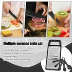 ALL-IN-ONE KNIFE SET: The 21-piece knife set includes chef knife, slicing knife, santoku knife, bread knife, utility knife, paring knife, 6 steak knives, scissor, knife sharpener and black knife block, Compared with other knife sets, our black knife set has 5 extra black plastic measuring spoon and multi-purpose slicer, meet your various demands and be a great kitchen assistant GOOD QUALITY: This knife set is made of premium stainless steel for strength and durability, remaining non-stick and rust resistant, The black coating prevents oxidation, Ideal for all your chopping, slicing and dicing needs, will last a long time and easy to clean, Meanwhile, the handle has proper weight could make you feel effortless CRAFTMANSHIP: This kitchen utensils include a variety of professional accessories, capable of cutting different foods, Each knife has sharp blade for cutting, Also knife handles are made of durable PP material, not easy to slip, With ergonomically designed handle, offering a steady and comfortable hold while cutting, works well regardless of hand size and for both left- and right-handed people MEETING MULTIPLE NEEDS: This kitchen knife set comes with six steak knives that easily cut steaks of various thicknesses, making it a great choice for families and food lovers who love to cook steaks, also with measuring spoons and slicer, Not only suitable for home kitchen apartment use, but also suitable to be given for friends and relatives at various festival, becoming their essential kitchen knives set EASY TO CARE: This knife set is effortless to maintain, black non-stick coating resists dirt and grime, making cleaning easier than other non-black knives, With a black knife block to save space, easy to store, keeping your knives organized and easily accessible while protecting the blades