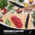ALL-IN-ONE KNIFE SET: The 21-piece knife set includes chef knife, slicing knife, santoku knife, bread knife, utility knife, paring knife, 6 steak knives, scissor, knife sharpener and black knife block, Compared with other knife sets, our black knife set has 5 extra black plastic measuring spoon and multi-purpose slicer, meet your various demands and be a great kitchen assistant GOOD QUALITY: This knife set is made of premium stainless steel for strength and durability, remaining non-stick and rust resistant, The black coating prevents oxidation, Ideal for all your chopping, slicing and dicing needs, will last a long time and easy to clean, Meanwhile, the handle has proper weight could make you feel effortless CRAFTMANSHIP: This kitchen utensils include a variety of professional accessories, capable of cutting different foods, Each knife has sharp blade for cutting, Also knife handles are made of durable PP material, not easy to slip, With ergonomically designed handle, offering a steady and comfortable hold while cutting, works well regardless of hand size and for both left- and right-handed people MEETING MULTIPLE NEEDS: This kitchen knife set comes with six steak knives that easily cut steaks of various thicknesses, making it a great choice for families and food lovers who love to cook steaks, also with measuring spoons and slicer, Not only suitable for home kitchen apartment use, but also suitable to be given for friends and relatives at various festival, becoming their essential kitchen knives set EASY TO CARE: This knife set is effortless to maintain, black non-stick coating resists dirt and grime, making cleaning easier than other non-black knives, With a black knife block to save space, easy to store, keeping your knives organized and easily accessible while protecting the blades