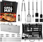 Complete Grill Accessoiries Set - Spatula, fork, tongs, basting brush, meat thermometer, grill brush, 2 grill brush heads, 2 grill mats, 8 corn holders, 4 skewers, aluminium case. High Quality Grill Utensils - All bbq accessories are made from professional grade stainless steel that resists heat and stands the test of time. Portable and Convenient Barbecue Set for Outdoor Grilling - Compact size kit is lightweight to carry which is perfect for camping, picnics and urban dwellers. Perfect Gift Ideas for Everyone – This deluxe grill tool set with case is ideal for presenting as a thoughtful gift for family and friends on any occasion. Please Note: 1. We recommend clean the barbecue tools after using and remember to wipe them dry before storing them into the case. 2. Ensure cooking surface and grill brushes are free of any bristles prior to cooking. 3. Please dip the grill brushes frequently in water while brushing the hot grill. 4. Please store all barbecue accessories in cool & dry place.