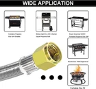 24 FT Extension-High Pressure Braided Gas Line Hose Propane Conversion Kit fo... 【MEFUN Upgraded 24 FT 350 PSI high-pressure Propane extension Hose】24ft stainless steel propane high pressure extension hose upgrade to come with powerful 6 different couplings adapter fitting: 3/8" NPT Male x 3/8" NPT Male, 1/2" Female NPT x 3/8" Flare Male, 3/8" NPT Male x 3/8" Flare Male, 3/8" Flare Male x 3/8" Flare Male, 1/4" NPT Male x 3/8" Flare Male, 1/8" NPT Male x 3/8" Flare Male, 【Premium Material】24ft 3/8" female flare fittings on both ends and 6 different types of adapters fittings kit of this 3/8" propane hose are made of 100% Solid Brass to ensure secure and durable for long-lasting to use. The 24ft 3/8” Female Flare propane hose is made of durable stainless steel braided with anti corrosion, anti-aging, air tightness, heat-resistance, flexibility features. This propane extension hose with CSA Certification, ensures air tightness and stability. 【Wide Compatibility】This 24FT 350 PSI high pressure propane extension hose has female 3/8" ends on both sides, connect an appliance equipped with a 3/8" male flare fitting. For extending the propane tank line on your LP appliance and fire pit table. Compatible with RV, gas grill, stove, propane heater, portable fire pit,griddle, propane generator, portable generator, propane smoker, burner and more. 【Standard Fittings】This 24FT 350 PSI high pressure propane extension hose with 6 different types of adapter adapters. Excellent 3/8" Propane Hose Conversion Adapter Kit for easy storage and portability, flexible use and space saving. This 12ft Braided Stainless Steel High Pressure Propane Extension Hose comes with a standard connector kit to take all your worries away. For RVs Best choice, travel trailer. 【Packaging】The kit includes: 1* 24FT 350 PSI High Pressure Propane extension Hose + 6* Brass Adapters+1* Wrench +1* Roll Sealing Tape + 1* Buckle Velcro. If you are not satisfied with the product after purchase, please contact us and we will provide a refund or replacement. Our Customer Service will solve your problems within 24 Hours. Shipping We offer FREE shipping on all orders! We ship within Three business days of payment, usually sooner. Local pickups and combined shipping options are not provided at this time. Return You can return a product for up to 30 days from the date you purchased it. Any product you return must be in the same condition you received it and in the original packaging. Please keep the receipt. Payment We accept payment by any of the following methods: PayPal Please pay as soon as possible after winning an auction, as that will allow us to post your item to you sooner! Feedback Customer satisfaction is very important to us. If you have any problem with your order, please contact us and we will do our best to make you satisfied. Contact Us If you have any queries, please contact us via ebay. We usually respond within 24 hours on weekdays. Please visit our eBay store to check out other items for sale! Thank you for shopping at our store.