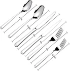 ELEGANT 24-PIECE SILVERWARE SET FOR 4: Includes 4 dinner forks, 4 salad forks, 4 dinner knives, 4 steak knives, 4 dinner spoons and 4 teaspoons. The knife spoon fork set is a necessary item for families and restaurants alike, serving as an invaluable asset for daily dining or for serving meals during gatherings and festivities. HIGH QUALITY STAINLESS STEEL: This silverware set is crafted from premium-grade stainless steel, renowned for its durability, corrosion resistance, and a nickel-free composition, ensuring a healthy and odor-free dining experience. Its robust build guarantees long-term use without any concerns of bending, and the cutlery set is easy to clean and DISHWASHER SAFE. 4 STEAK KNIVES INCLUDED: This pack offers 4 additional steak knives, these knives are designed with sharp serrations on their blades, making them exceptionally adept at effortlessly slicing through meat, making them perfect for any dining occasion, and the ergonomic design provides a comfortable and secure grip. UNIQUE APPEARANCE: The tableware set adopts a simple and generous design, the end of the handle is embellished with flowers, which makes the flatware set more graceful and elegant and elevates your dining experience. IDEAL FOR MANY OCCASION: Our kitchen utensil set is idea for family daily use, gatherings, banquet, Thanksgiving, wedding or other formal occasions. Also perfect for as a gift to family members, lover partner, friend or colleague because of exquisite packaging Product Description PACKAGE INCLUDES · 4 x Dinner Knives · 4 x Dinner Forks · 4 x Dinner Spoons · 4 x Teaspoons · 4 x Salad Forks · 4 x Steak Knives LUXURY SILVERWARE SET Prendcyx 24-piece Silverware Set is crafted from premium stainless steel, features a perfect balance of thickness and polished edges, providing a comfortable grip while enjoying your meals, can well match your kitchen style and dinnerware. USING INSTRUCTION: Please wash flatware set with warm soapy water before using them for the first time, In order to remove any residue left from the manufacturing process. Please drying the cutlery set in a dry place after cleaning Smooth edges protect the lips from being scratched, balance weight make it grip comfortable. Good use in soup and ice cream. Ergonomic handle design, comfortable and convenient to use, suitable for party entertaining guests and daily family dining use This flatware set have proper thickness and even distribution of weight, maintains a medium weight, comfortable to use will not be too heavy or too light, suitable for people of any age to use