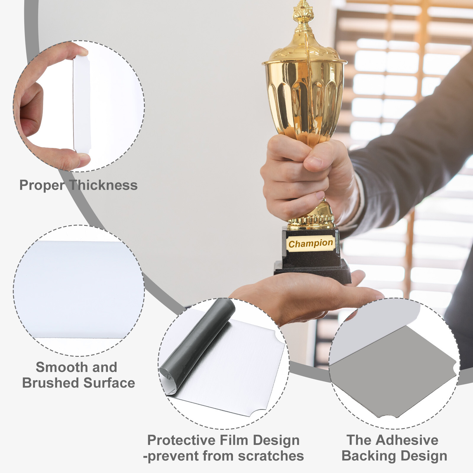 Document Our engraved nameplates are perfect for mounting on plaques, picture frames, sweaters, trophies, bags, display boxes, flag cases, and anything else.SpecificationMaterial: Stainless SteelColor: WhiteSize: 15.2 x 6.3 cm/6 x 2.5 Inch(L*W)Thickness: 0.4 mm/0.02 InchPacking List: 24 Pcs x Engraved NameplateAdvantageOur engraved nameplates are made of brushed stainless steel which is durable, stable, not easy to fade, rust, or break, and can be used for a long time. With a smooth surface, it will not scratch your skin.The right thickness makes the plate stronger and allows for deeper engraving. These elegant nameplates have a beautiful luster and a simple design. Suitable for various crafts to add brilliance.The protective film design can effectively prevent scratches. The adhesive backing design allows you to stick this nameplate anywhere without any tools and it can be firmly on the objects.InstructionPlace a metal workbench block underneath the blank stamping tags for better stamping.NOTE:1. There may be light scratches and blemishes due to shipping, but they can be polished.2. Only for laser engraving, not suitable for mechanical engraving.3. Please remove the protective film before use. 24 Pcs 6" x 2.5" Engraved Name Plate Picture Frame Label Art Tag, White Our engraved nameplates are perfect for mounting on plaques, picture frames, sweaters, trophies, bags, display boxes, flag cases, and anything else. Specification Material: Stainless Steel Color: White Size: 15.2 x 6.3 cm/6 x 2.5 Inch(L*W) Thickness: 0.4 mm/0.02 Inch Packing List: 24 Pcs x Engraved Nameplate Advantage Our engraved nameplates are made of brushed stainless steel which is durable, stable, not easy to fade, rust, or break, and can be used for a long time. With a smooth surface, it will not scratch your skin. The right thickness makes the plate stronger and allows for deeper engraving. These elegant nameplates have a beautiful luster and a simple design. Suitable for various crafts to add brilliance. The protective film design can effectively prevent scratches. The adhesive backing design allows you to stick this nameplate anywhere without any tools and it can be firmly on the objects. Instruction Place a metal workbench block underneath the blank stamping tags for better stamping. NOTE: 1. There may be light scratches and blemishes due to shipping, but they can be polished. 2. Only for laser engraving, not suitable for mechanical engraving. 3. Please remove the protective film before use. Hot Item Payment 1.We accept eBay payment . 2.Payment must be received within 7 business days of auction closing. Shipping 1.We ship to your eBay or Paypal address. Please make sure your eBay and Paypal address is correct before you pay. 2.Items will be shipped within 1-3 business day when we received payment. 3.Delivery time depends on destination and other factors. Description Policy 24 Pcs 6" x 2.5" Engraved Name Plate Picture Frame Label Art Tag, White Our engraved nameplates are perfect for mounting on plaques, picture frames, sweaters, trophies, bags, display boxes, flag cases, and anything else. Specification Material: Stainless Steel Color: White Size: 15.2 x 6.3 cm/6 x 2.5 Inch(L*W) Thickness: 0.4 mm/0.02 Inch Packing List: 24 Pcs x Engraved Nameplate Advantage Our engraved nameplates are made of brushed stainless steel which is durable, stable, not easy to fade, rust, or break, and can be used for a long time. With a smooth surface, it will not scratch your skin. The right thickness makes the plate stronger and allows for deeper engraving. These elegant nameplates have a beautiful luster and a simple design. Suitable for various crafts to add brilliance. The protective film design can effectively prevent scratches. The adhesive backing design allows you to stick this nameplate anywhere without any tools and it can be firmly on the objects. Instruction Place a metal workbench block underneath the blank stamping tags for better stamping. NOTE: 1. There may be light scratches and blemishes due to shipping, but they can be polished. 2. Only for laser engraving, not suitable for mechanical engraving. 3. Please remove the protective film before use. Hot Item Payment 1.We accept eBay payment . 2.Payment must be received within 7 business days of auction closing. Shipping 1.We ship to your eBay or Paypal address. Please make sure your eBay and Paypal address is correct before you pay. 2.Items will be shipped within 1-3 business day when we received payment. 3.Delivery time depends on destination and other factors.