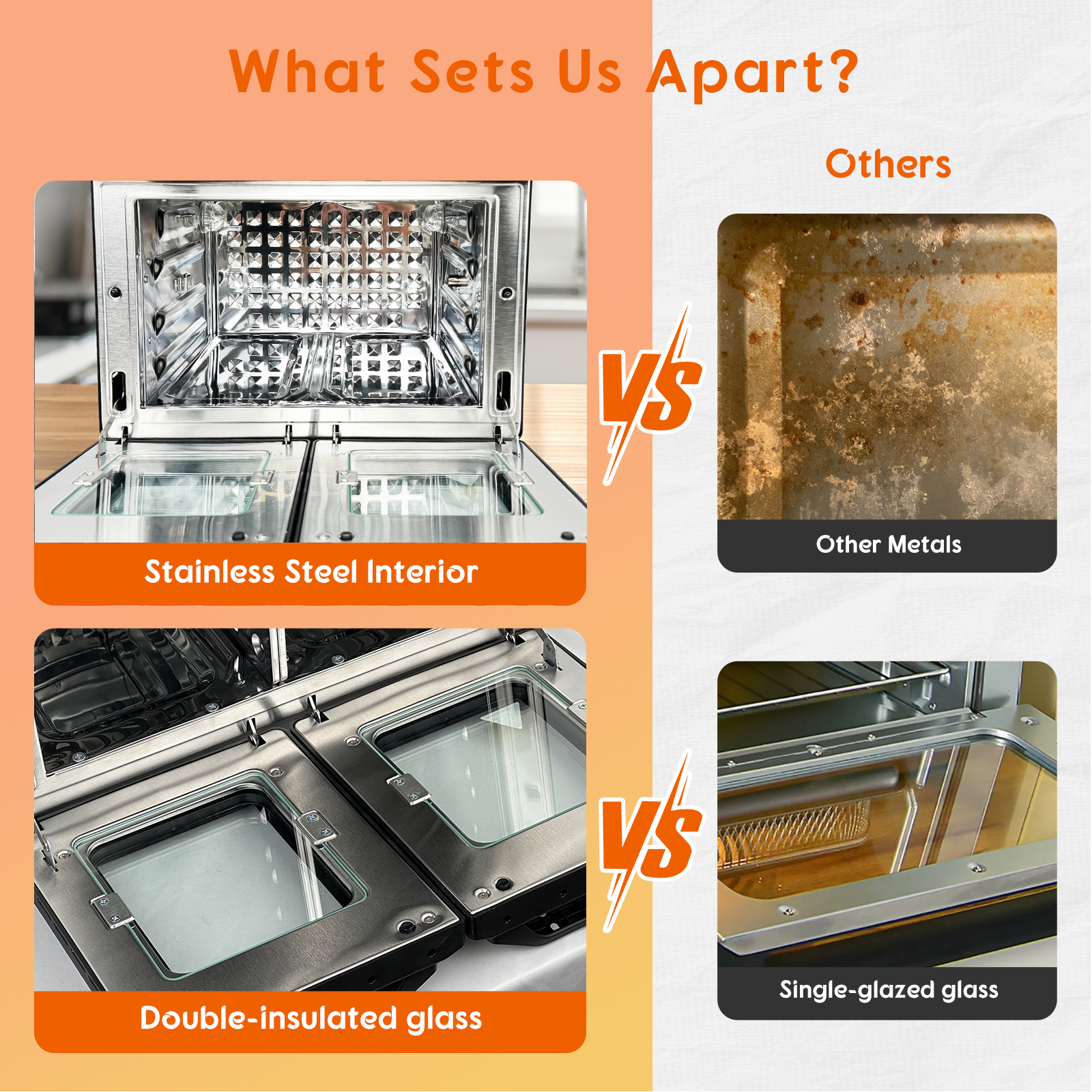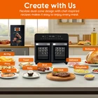 Worried about limited cooking space or wasting time on multiple batches? With two independent cooking zones, this dual-basket fryer lets you prepare two dishes simultaneously. Whether you're frying French fries on the left, grilling chicken wings on the right, or removing the divider and using the 24QT's extra space to roast a chicken, it's easy to meet your needs. Hosting a party or preparing meals for the family? This versatile dual air fryer oven accommodates a 3-pound whole chicken or a large 10-inch pizza. The built-in rotisserie ensures juicy, evenly toasted results, making it a must-have for get-togethers or meal prep. With top and bottom heating elements and dual fans, this air fryer toaster oven rotisserie ensures even, consistent cooking every time. Combined with 360° rapid heating technology, it delivers crispy, golden results without flipping. With a maximum adjustable temperature of 450°F, it's perfect for searing steaks, roasting vegetables, and achieving restaurant-quality results at home. Say goodbye to unpleasant plastic odors while cooking. The premium stainless steel interior ensures healthier, odor-free meals while also being wear-resistant. Cleaning is a breeze; simply wipe it down and it's ready for the next dish, saving you time and effort. This double-layered, insulated glass stainless steel air fryer locks in heat and prevents burns, making it safer for homes with children. Enjoy peace of mind while cooking your favorite meals. Streamline your cooking with 10 preset functions, including air fry, bake, broil, toast, pizza, rotisserie, and more. This dual air fryer replaces multiple appliances, saving you space, time, and money. Whether you're roasting, frying, or dehydrating, it's the perfect addition to your kitchen. This convection oven comes with all the accessories you need, including heat-resistant gloves, a rotisserie kit, baking sheets, and racks. The included recipe book ensures that even beginners can effortlessly prepare delicious meals. Enjoy a 2-year warranty with online registration and benefit from 24/7 customer support when you need help. Buy with confidence, knowing you'll be supported every step of the way.