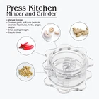 Save time: Quickly and easily mince a variety of ingredients such as garlic, ginger, herbs, nuts and other spices with our versatile Handheld Grinder. 2 Pack Garlic Grinder for the price of 1: Get two products for the price of one. Use one exclusively for garlic and the other for herbs, ginger, or nuts, avoiding odor transfer between ingredients. Excellent Quality Material: Our Manual Garlic Mincer is made of resistant, BPA free and safe plastic for chopping different foods, and dishwasher safe. Ideal for your kitchen tool kit. Ergonomic shape and efficient design: The shape of the Garlic Crusher allows you a secure and comfortable grip to easily twist it to mince garlic or any other small and soft ingredients. Curved teeth for easy and smooth manual rotation Easy to clean: The Garlic Mincer Tool is made of two plastic pieces with separate cutting teeth, making cleanup a breeze. Just separate the two pieces, add soap and plenty of water immediately after use, clean with a soft sponge and you're done. Product Description Discover Kitchen Versatility with Our Multi-Purpose Manual Garlic Mincer! This ingenious kitchen tool allows you to crush a wide variety of ingredients with ease and precision, making it an essential accessory for any cooking enthusiast. Add the Multi-Purpose Manual Garlic Grinder to your kitchen utensils and discover how it can streamline your culinary preparations. Whether you're crafting a delicious garlic sauce, an aromatic curry, or a homemade dressing, this practical utensil will become your ultimate ally. Experiment with flavors, save time, and enjoy freshly ground ingredients with ease. 2-Pack Garlic Mincer 2-Pack (Green & White) Easy to Use: Its intuitive and ergonomic design makes it simple to operate. Just place the ingredients in the compartment, close the lid, squeeze, and rotate back and forth with your hands. You won't need to exert excessive force as the grinder's teeth will easily crush the ingredients. Preparing your dishes will be a breeze! Garlic Mincer 2-Pack (Blue & White) Quality and Durability: Manufactured with top-grade materials and food-safe plastic, this grinder is designed to provide you with ease and convenience when crushing foods or spices. Its curved blades have been designed to ensure effective and long-lasting grinding, offering a reliable and efficient kitchen tool. Garlic Mincer 2-Pack (Gray & White) Multi-Purpose: This grinder is not limited to just garlic. You can use it to grind fresh ginger, basil, chili, nuts, and a variety of spices. Its versatile design makes it perfect for a wide range of ingredients, allowing you to experiment with flavors and scents in your dishes. Pack 2 garlic and spices grinders Purchase the 2-Pack of grinders, use one exclusively for garlic and the second one for other ingredients like spices or nuts. Chop or Crush Garlic Use one of the two grinders exclusively for crushing garlic, so that the other foods won't retain the odor of this ingredient. Chop or Crush Chili Use the second grinder for crushing ingredients like chili. Chop or Crush Nuts You can also use one of the two grinders to crush nuts and use them as toppings. Chop or Crush Rosemary You can also use the grinder to crush various ingredients like rosemary, thyme, basil, and more. Garlic Chili Nuts Rosemary