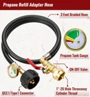 Store New Arrivals Add to Favorite View Feedback Contact 3 Feet Propane Refill Adapter Hose with Gauge and On/Off Control Valve, Extension Propane Refill Hose, Fill 1 Pound Bottles from 20Lb Tank Description Item model number PAH03 Product Dimensions 6 x 6 x 3 inches Country of Origin China Item Weight 1.12 pounds Size Rubber Product Summary - It includes a 3 feet hose, an ON-Off Control Valve, and a tank gauge level indicator with a glow-in-the-dark dial for easy gas level monitoring and leak detection. For added convenience, it comes with a 1LB Propane Bottle Cap. Material Quality - The hose and its components are made from 100% Solid Brass and durable rubber, offering durability and resistance to various environmental factors. Certified, this Propane Hose ensures air tightness and stability. Compatibility - This gas hose supports a high pressure rate of 350PSI and connects to a 1" x 20 Female Throwaway Cylinder Thread. It refills 1lb camping bottles and connects directly to 20-50Lb propane tanks, suitable for various outdoor and home applications. Installation and Usage - The hose is easy to connect to propane tanks. The control valve regulates the refilling process, and the QCC adapter features an overflow protection device. To use, connect the QCC1 adapter to your tank, open the gas, then connect the 1lb adapter to your small tanks. REFILL EASILLY - Suitable for all refillable green 1lb propane cylinder bottles, easy and quick to fill, great for camping, tailgating, heating needs, outdoor cooking, etc. CALPOSE 3 Feet Propane Refill Adapter Hose with Gauge and ON/Off Control Valve, Extension Propane Refill Hose, Fill 1 Pound Bottles from 20lb Tankr Specifications Fuel Type: Propane Hose Material: Rubber Come with: Glow-in-the-dark gauge & ON/Off Control Valve Inlet: QCC-1 Outlet: 1"-20 Female Throwaway Cylinder Installation Steps Step 1. Screw the propane refill adapter on the big tank. Step 2. Screw the 1lb propane tank on the adapter. Step 3. Flip the big tank over, then open the valve and it starts refilling. Note: ONLY used for outdoors. ABOUT US We offer the best prices around on high quality products. Our E-store includes media such as books, movies, music and games while offering electronics, toys, sporting apparel, clothing, tools, general home, garden items and more. SHIPPING We are always working hard to ensure your package arrives as soon as possible. Please understand that some factors like weather, high postal traffic, and the performance of shipping companies are outside of our control. We offer free shipping to the lower 48 states and ship within 2 business days of payment, usually sooner. We do not accept P.O. Boxes. Please provide a physical address. For shipping outside of the continental USA, we only use eBay's Global Shipping Program.The item is shipped to KY and then sent to the rest of the world. International customers are responsible for all duties and taxes. Continue to check out in order to calculate costs for shipping the item to your country. Messages regarding eBay's Global Shipping Program MUST be directed at eBay EXCLUSIVELY. RETURNS We offer a 30-Day Return Policy on items which you are not completely satisfied with. You have the option for a full-refund or an exchange of the item. No returns are available on items shipped outside of the USA. PAYMENT We accept PayPal. CONTACT US This page content is yet to come Please ad us to your favorite seller and visit again later Thank You CUSTOMER SATISFACTION We try our very best to make sure every customer is completely satisfied. If there's a problem, message us! We're happy to help. WE ACCEPT Copyright © 2021 AutoDS. | All Rights Reserved