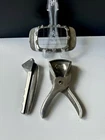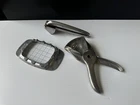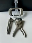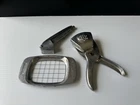 This auction is for 3 vintage aluminum MCM kitchen gadgets. These gadgets are sturdy, functional, and add a retro look to any kitchen. Set includes: Williamson USA aluminum hand held lemon lime citrus juicer squeezer 6” Presto USA aluminum French fry cutter site side handles and wire grid center 5.5” x 3.25” Aluminum garlic press Japan 5.75” All gadgets are in working order. Please see all photos as they are part of the item description.