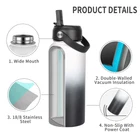 Why Choose Us: Double wall design, that is perfectly vacuum sealed, can keep your drinking cold for 24 hours and hot up to 12 hours. Ensure your drinks pure,natural,and odor free while maintaining its temperature anytime anywhere. Made of food grade 18/8 stainless steel that is 100% BPA free and non toxic. This water jug is fully resistant to oxidation and rust, more durable and lasting. The outside layer is anti slip for easy grip without any possible sweet issue. 2 replaceable and leakproof lids to fit your whatever needs. One spout lid with screw cap allows for easier and faster hydration. Straw lid makes it easy to steal a sip without slowing down. Portable 32 oz capacity is great for the daily use. Keep you hydrated all the time. Sleek looks with vivid colors, it can be widely used in various occasions for women and men. 【Vacuum Insulated】 32 oz stainless steel water bottle is the perfect way to keep your drinks as cold or hot as you like them. Vacuum insulated makes this metal water bottle capable of keeping cold drinks cold for up to 24 hours, and hot beverages warm and steamy for up to 12 hours. You can use your insulated bottle for some cooling refreshment mid-workout to maintain your active lifestyle or to carry your winter warmers when the colder season hits. 【18/8 Premium Stainless Steel】 The bottle is designed with double-wall insulation reducing condensation, meaning regardless of the temperature of your drinks the bottle will not sweat and you will be able to keep a steady grip on your bottle. The water bottle is totally BPA-free, made from high grade stainless steel, which means it’s a healthy option for long-term hydration and won’t rust over time. 【2 Lids for Straw & Spout Lids】 The Sports Stainless Steel Water Bottle with 2 compatible and leakproof lids to fit your every need. One spout lid with screw cap allows for fast water flow when you're feeling the burn. Another straw lid allows you to enjoy spill-proof sipping without efforts. 【Easy & Convenient to Carry】 This versatile water bottle is a great option for hydration all year round. Use it in the gym, take it to the office, or carry it on walks. Whatever the weather, keep your nearby for quick and easy hydration. 【100% Satisfaction Guarantee】 is committed to providing the best value and highest quality to the customers. Our after-sale team will offer superior service to solve all problems. If any reason, you are not 100% satisfied with the Water Bottle, we will issue you a full refund or an exchange! 【Package Included】 1 * 32 oz Water Bottle, 2 * Lids, 2 * Straws, 2 * Straw Brush
