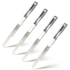 【Snap-Off Blades】: box cutter features 9mm wide snap-off blades, providing a safe and convenient way to change out blades when needed. The blades are made from high-quality stainless steel, ensuring durability and sharpness. 【Retractable Design】: The box cutter has a retractable design, making it easy to use and store. The blades are securely held in place when not in use, preventing accidental cuts or injuries. 【Comfortable Grip】: The box cutter is designed with a comfortable grip, making it easy to hold for extended periods. It is lightweight and easy to maneuver, making it suitable for various cutting tasks. 【Versatile Uses】: The box cutter is versatile and can be used for a wide range of tasks, including cutting cardboard, wrapping paper, plastic bags, and more. It is ideal for home, office, and school use. 【Safety Features】: The box cutter has safety features to prevent accidental cuts or injuries. The blades are securely held in place when not in use, and the retractable design prevents them from accidentally deploying.