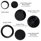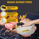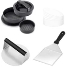 Package includes, 1 smash burger press, 1 smash burger spatula, 1 plastic hamburger press patty maker, 60 burger patty paper sheets. This hamburger smasher tool kit is a great gift for men, women, father as Christmas, BBQ party, Birthday gifts Premium material, made of commercial-stainless steel, smash burger press and extra wide burger spatula are durable enough for long-term daily use. Hamburger patty maker is made of food-ABS plastic, non-stick, safe and easy to use. Plastic handles are heat-resistant and keep cool when using them. This flat top grill accessories is dishwasher safe, except the patty papers Hamburger patty maker, the grooves on the burger mold can make professional burger shape and allow the patty heated evenly when cooking on the pan, griddle and flat top grill, making delicious hamburgers. 60 sheets smash burger papers prevent your freshly made burgers from sticking to each other and makes your frozen ones easy to separate, and keep your hands clean Bacon press & smash burger spatula, the smash burger press has a smooth and flat bottom, burger smasher can help to heat food evenly and cook faster and press out the unwanted grease, makes griddle or grill cooking much healthier. Extra wide spatula has extra-wide support surface to hold a full-size burger, metal burger spatula execute a fantastic smash, excellent scrape and flawless flip Application, our burger smasher tool set can meet a full range of indoor and outdoor cooking purposes, like kitchen, cookouts, camping and backyard party. This griddle accessories works perfectly on flat top grill, griddles, teppanyaki, hibachi, cast iron pans and BBQ grills