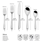 This Wave flatware is produced from heat-treated steel to create a heavier gauge with superior definition. This flatware set is crafted from superior 18/0 stainless steel, with a mirror-finish. Features a contemporary rounded handle with bias cut base giving your table setting a modern look. This 42 piece set, service for eight includes (8) each: dinner fork, salad fork, dinner knife, dinner spoon and teaspoon. Also included in a large serving spoon and large cold meat fork. Dishwasher safe. High Quality Stainless Steel: Crafted from food-grade stainless steel, this flatware set is durable and resistant to corrosion. The high-quality stainless steel ensures long-lasting performance, making it ideal for daily use and resistant to tarnishing or rusting over time. Additionally, this set is Dishwasher Safe. Classic Sophistication: Embrace the traditional beauty of this silverware set, an essential addition to any kitchen. Whether dining solo or entertaining guests, these utensils elevates the ambiance of any table setting, creating unforgettable moments and cherished gatherings around the dinner table. Uncompromising Strength: Unlike lesser-quality alternatives prone to bending or warping, these utensils maintain their structural integrity over time, promising reliable functionality that surpasses expectations. Rest assured, these heavy-duty utensils are tough and reliable, ready for any dining task. Ergonomic Handling: Embrace the ease of use provided by this set's comfortable design. Whether slicing through tender meats or delicately scooping up sides, the well-balanced distribution and rounded edges of these utensils make them a pleasure to hold. Silverware Set for 8: (8) 8-inch dinner forks, 7-inch salad forks, 9.25-inch serrated dinner knives, 7.5-inch dinner spoons and 6.25-inch teaspoons. Also includes a 2-piece serving set with 1 tablespoon and 1 cold meat fork. This set is indispensable for daily meals, as well as for hosting dinners or parties, making it a versatile dining essential.
