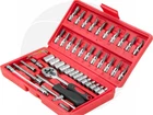 A great tool set for everyday use, comes with 21 bit sockets and 13 bit sockets. This kit features a wide variety of sockets and drivers for completing some of the most basic repairs around your home or garage. This kit is suitable for anything from fixing a bicycle or taking apart a lawn mower. This kit includes various driver bits, sockets, sliding bar, a flexible bar, ratchet, screwdriver handle hex keys and storage case. Features: Made of Chromium Vanadium steel for a long life and durability Can be used for repairing bicycles, small engines, and home appliances Includes socket extensions, flexible joints, and T-handle wrench Contains most commonly used bits hexagon keys and metric sockets Great quality reversible ratchet with socket release mechanism Specifications: Model: NB030002 Material: Cr-v Size: 1/4in 46pcs 21pcs socket bits S2 material of bits Torx drivers: T10, T15, T20, T25, T30, T40 Phillips drivers: PH1, PH2, PH3 Slot drivers: 4, 5.5, 6.5mm Pozi drivers: PZ1, PZ2, PZ3 Hex drivers: 2, 2.5, 3, 4, 5, 6mm 1pc 72T ratchet handle 13pcs sockets:4, 4.5, 5, 5.5, 6, 7, 8, 9, 10, 11, 12, 13, 14mm 1pc sliding bar 1pc screwdriver handle 1pc universal joint 2pcs extension bar: 50,100mm 1pc adaptor: 25mm 1pc flexible bar: 150mm 4pcs hex keys: 1.27, 1.5, 2.0, 2.5mm Packaged in plastic case Package includes: 46pcs 1/4 inch drive socket set with case Images sell! Get Supersized Images & Free Image Hosting Attention Sellers - Get Templates Image Hosting, Scheduling at Auctiva.com. Track Page Views With Auctiva's FREE Counter