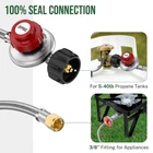【Unsurpassed Gas Regulation & Stability of Gas Flow】 As ’s propane hose is equipped with an adjustable high-pressure propane regulator ranging from 0-20PSI, you can easily manage the flame depth and the heat degree of your grills, turkey fryers, fish fryers, burners, outdoor cookers & stoves, smokers, heaters, fire pits and propane forges. 【Built to Enjoy Durability & Longevity】 Featuring 4-layer hose construction, propane hose with high-pressure regulator is constructed from superb flame-retardant PVC and stainless-steel braid, which strengthens the propane hose’s sturdiness and its resistance to weather, tear and wear. 【100% Solid Brass Connections & Leak Proofness】 propane hose with regulator is at 4ft long and has a secure fitting with QCC1/Type1 propane tank connections. The other end of the hose is sealed with 3/8” flare fitting with an outside diameter of ⅝ inches, which fits for most propane appliances. Both ends of the propane regulator hose are accurately manufactured from high-quality brass to against corrosion and to provide an air-tight connection, ensuring 100% SAFETY! 【quality & CSA Certification】 Certified by CSA, the high pressure propane regulator with hose has a built-in protection device to automatically shut off to protect its users. What’s more, the propane hose is also known by its non-clogging inner tube to double the smooth delivery of gas flow from propane tanks to your fryers or griddles. 【1-Year 】hose regulator for propane tank are under 1-Year . As we value every customer’s voice and experience with our products and service, we provide 24hrs/7days non-stop customer support to you. Pls feel free to us whenever you are concerned about the product or after-sales service.