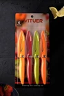 PARING KNIFE SET: 8 Piece Paring Knives including 4 of Paring Knives and 4 of Knife Sheath, it’s designed to be a combination of simple beauty and practical functionality. MULTI-FUNCTIONAL PARING KNIVES: This Rainbow Knife set can easily handle your daily kitchen tasks of chopping, slicing, mincing and dicing fruits, vegetables and other small or intricate cooking work. RAZOR SHARP BLADE: This pairing knife is made from the high-quality German stainless steel(3Cr13MoV) with a Rockwell Hardness of 56±2 HRC. That paring knife set of 8 has an exceptional and enduring razor-sharp edge for ultimate precision and performance in the kitchen. ERGONOMIC PP HANDLE: The blade of this paring knife is integrated with a soft and comfortable handle, creating the perfect grip. The ergonomic shape enables the right balance between the handle and the thin blade, which can make cutting easier and safer during the meal preparing. WHAT YOU GOT: 4 Pcs Paring knife, 4 Pcs Knife Sheath, and friendly customer service. Both Knives and Sheaths are 100% BPA free and lead free. Hand wash is recommended for best performance. Product Description VITUER originated in France. Durability, Design, Innovation, Integrity and Value: These attributes and the VITUER brand have been synonymous for more than 20 years. We're exploring design innovations like hybrid ceramic nonstick and cookware technologies designed to make everyday cooking even easier. Designers and collaborative designers from to provide creative support solution for the brand. Our mission is “Make your kitchen and home look and cook great.” 4 PCS Paring Knife Set Paring Knife set includes 4PCS paring knives. It can meet most of your kitchen needs. Keep this set handy at dinner parties or behind the bar to prepare garnishes for your favorite drinks or dishes. The entire collection is made to the highest sanitary standards and it's ideal gift for family, friends, even pro chef.