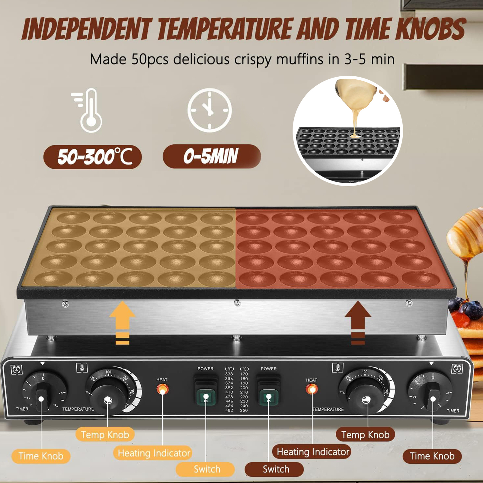 Store category Sign Up Now ! You may also like Product Description Bullet Points: Durable and Long-Lasting: Crafted from high-quality stainless steel, our electric waffle machine is built to last for years. Its rustproof non-stick design ensures easy cleaning and consistent performance, even after regular use. Rapid Mini Pancake Maker: Whip up 50 bite-sized pancakes in 3-5 minutes with our electric waffle machine. Boasting an iron cast plate for unmatched heat conduction, it heats up instantly and uniformly. Dual-zone Control: Our electric waffle maker, which includes two temperatures and a 5-minute timer, will up your waffle game. Having a temperature range of 122–572F (50–300C). Use Easily: With an indicator light that shows the working status, this electric waffle machine ensures optimal performance. Equipped with a waterproof switch and a strong power cord, it provides added safety and reliability for worry-free cooking. Convenient to Clean: Achieve hassle-free cleaning with our Electric Waffle Machine. The non-abrasive sponge and some detergent can be used to clean the non-stick plates. Non-slip rubber feet ensure stability while working. Enjoy delicious waffles every morning with the non-stick Waffle Machine Maker! Its High heat conduction cast iron plate ensures even browning, while the 50-300°C Temperature range allows for customized cooking. Equipped with an indicator light, our maker is easy to use and clean for hassle-free breakfasts! Specification: Name: Electric Waffle Machine Power: 1.6kW Heating area: about 19.5x10.2in (495x260mm) Individual pancake size: about 1.8x0.4in (45x10mm) Temperature range: 50-300°C (122-572°F) Product size: about 21.0 x12.0 x8.0in (533x305x203 mm) Weight: about 10.73kg Packing List: 1* Waffle Machine Maker Payment Delivery details Terms of sales About us Feedback & DSRs Payment Before you palce an order, please kindly make sure that you have a paypal account. We accept PAYPAL payment only. Payment should be completed within 2 days after auction closed, or unpaid dispute will be filed for an closing auction. An unpaid case will be filled after 4 days. Delivery details We ship to your eBay address. Each package will be shipped to US by UPS Regular Parcel with tracking number. Please check your shipping address carefully before checkout, it can't be changed if order completed. All items will be shipped within 1-2 business day upon receipt of payment.Orders placed on weekend will be shipped within 3 days. If you do not receive your item in 7-10 business days.please contact us immediately for further assistance. We will be responsible for any damages or losses incurred in the shipping process. About us We maintain high standards of excellence FIVE STAR and strive for 100% customer satisfaction! Positive Feedback is very important to us. We hope that you contact us immediately Before you give us neutral or negative feedback, so that we can satisfactorily address your concerns. We promise to offer the lowest price and high quality produce. Our working time: From Monday to Friday(9:30 am to 18:00pm), we don't working on holidays ,hope you can understand and know that , thank you. Please always talk to us via ebay Message. We appreciate your business and look forward to growing our e-Bay sales with satisfied customers. Feedback Contact us If you have any questions, please feel free to contact with us by ebay Message during our business hours ( 9:30a.m. to 5:30 p.m.), or email us through eBay, we will try our best to help you to resolve it. For any presale or after-sale questions,please do feel free to email us! Due to the time difference, each email will be replied within 1 working day,and weekend will be delayed a bit. Feedback