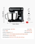 Product Overview The Stand Mixer 5.1 QT Electric Dough Mixer combines power and versatility, making it an essential tool for both professional chefs and home bakers. With a robust 380W motor and 10+P speed settings, this mixer can handle everything from delicate meringues to tough bread dough. Key Features: Powerful 380W Motor: Ensures efficient mixing, kneading, and whipping. 10 + P Speed Settings: Offers a range of speeds to suit various recipes, from slow stirring to high-speed whipping. 5.1 QT Stainless Steel Bowl: Large capacity bowl with a single handle, perfect for making large batches. Easy-to-Use Control Knob: Lever-controlled knob with visual status indicators for hassle-free operation. Splash Guard: Prevents spills and keeps your kitchen clean. Sturdy and Durable Construction: Made from high-quality ABS material for long-lasting use. Easy to Disassemble and Clean: Parts are simple to remove and clean, ensuring maintenance is a breeze. Benefits: Enhanced Efficiency: Save time and effort with faster, more consistent results. Versatility: Perfect for a wide range of recipes, from doughs to desserts. Professional Quality: Achieve professional-grade results in your own kitchen. Convenience: Easy to operate and clean, making your baking experience more enjoyable. Safety: Features a splash guard and secure design to prevent accidents. Specifications: Feature Details Model SM-1510H Capacity 5.1 qt / 4.79 L Power 380W Speed Settings 10 + P Material ABS Bowl Material Stainless Steel Item Dimensions 16.2 x 9.1 x 11.7 in / 412 x 232 x 297 mm Item Weight 8.4 lbs / 3.80 kg Color Black Upgrade your kitchen with the Stand Mixer 5.1 QT Electric Dough Mixer and experience professional quality and convenience at home. Order now and elevate your baking to the next level! Specifications: - Length: 38.0 in, Width: 25.5 in, Height: 33.0 in