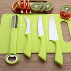 ☑ Best Value Combo--- 【Package Include: 3 knives, 1 peeler and 1 cutting board】 ┉┉┉┉┉★┉┉┉┉┉★┉┉┉┉┉★┉┉┉┉┉★┉┉┉┉★┉┉┉┉┉★┉┉┉┉┉┉ Features: ① ☑ Various Knife Set--- Sharp stainless steel blades, solid ergonomic handles for a safe and secure grip ✔5 inch Utility Knife Ideal for prepping and straight cuts of fruits, vegetables and boneless fish and meats ✔4 inch serrated knife Multi-purpose Serrated Knife, perfect for slicing cake, crusty bread, bagels, pastries, it is also great for cutting slippery and wax skinned fruit like pineapples, lemons, tomatoes, and more ✔3.5 inch paring knife Bird’s beak shape paring knife, curved blade design makes paring small round fruit and vegetable easier ② ☑ Safe Material & Perfect Size Cutting Board --- BPA Free safe material, perfect small size measuring at 11.5x7.5 inches, ultra lightweight, non slip surface, both sides are usable, easy grip handle design, convenient and easy to hand and storage ③ ☑ Extra Bonus--- Multi function peeler with bottle opener and easily remove eyes from potatoes, in addition, it is also a fish scale remover ④☑ So Many Use---- Perfect knife set for daily use on fruit and vegetable to make salad, snack, a quick breakfast, processing food for baby, lightweight and compact size make it convenient to take out for picnic, barbecue Caution▲ Knives are very sharp, please keep out of reach of children ✔ Great Value Combo → Package Include: 3 knives, 1 peeler and 1 cutting board ✔ Various Knife Set → Sharp stainless steel blades, solid ergonomic handles for a safe and secure grip, 5 inch Utility Knife is ideal for prepping and straight cuts of fruits, vegetables and boneless fish and meats, Multi-purpose 4 inch Serrated Knife, perfect for slicing cake, crusty bread, bagels, pastries, it is also great for cutting slippery and wax skinned fruit like pineapples, lemons, tomatoes, and more ✔ Safe Material & Perfect Size Cutting Board → BPA Free safe material, perfect small size measuring at 11.5x7.5 inches, ultra lightweight, non slip surface, both sides are usable, easy grip handle design, convenient and easy to hand and storage ✔Extra Bonus → Multi function peeler with bottle opener and easily remove eyes from potatoes, in addition, it is also a fish scale remover ✔So Many Use → Perfect knife set for daily use on fruit and vegetable to make salad, snack, a quick breakfast, processing food for baby, lightweight and compact size make it convenient to take out for picnic, barbecue